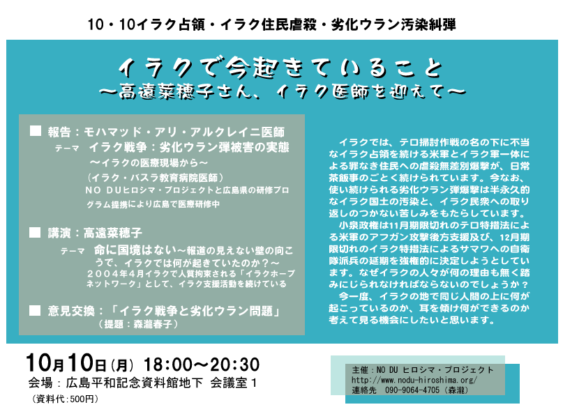 10・10イラク占領・イラク住民虐殺・劣化ウラン汚染糾弾