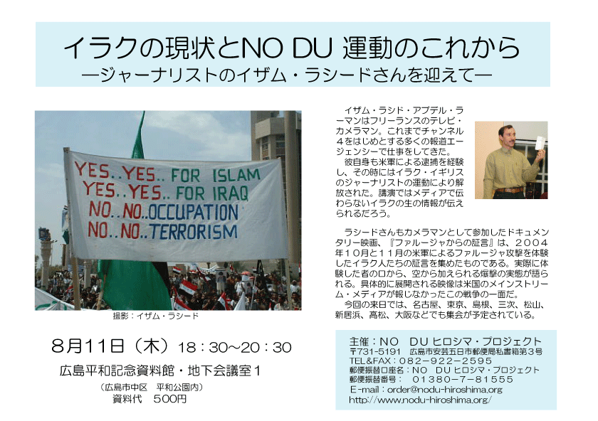 主催:劣化ウラン弾禁止(NO DU)ヒロシマ・プロジェクト
